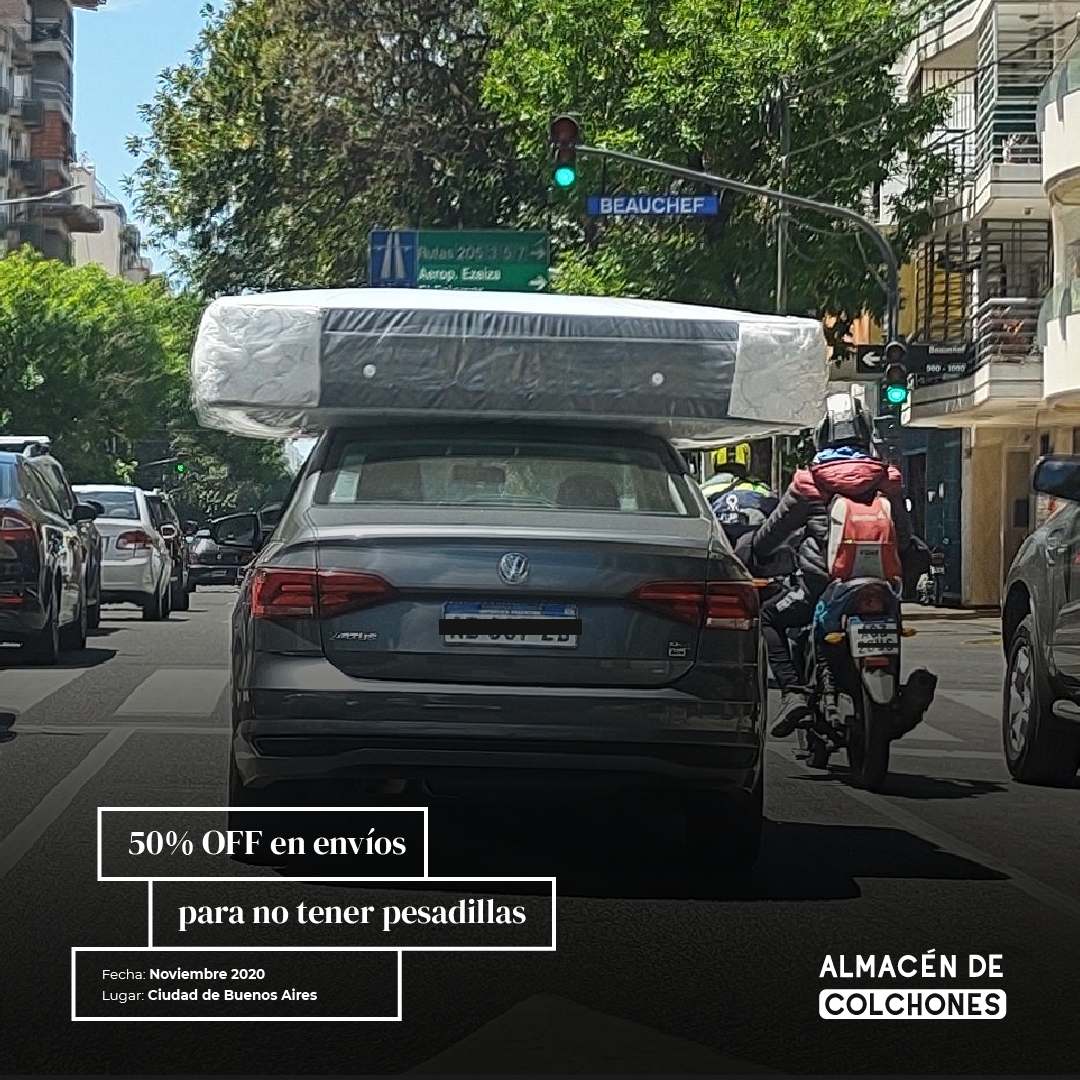 Contexto: Había que comunicar el 50% de descuento en envíos con la compra del colchón.