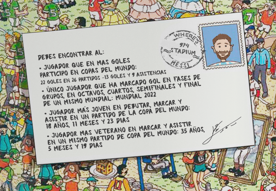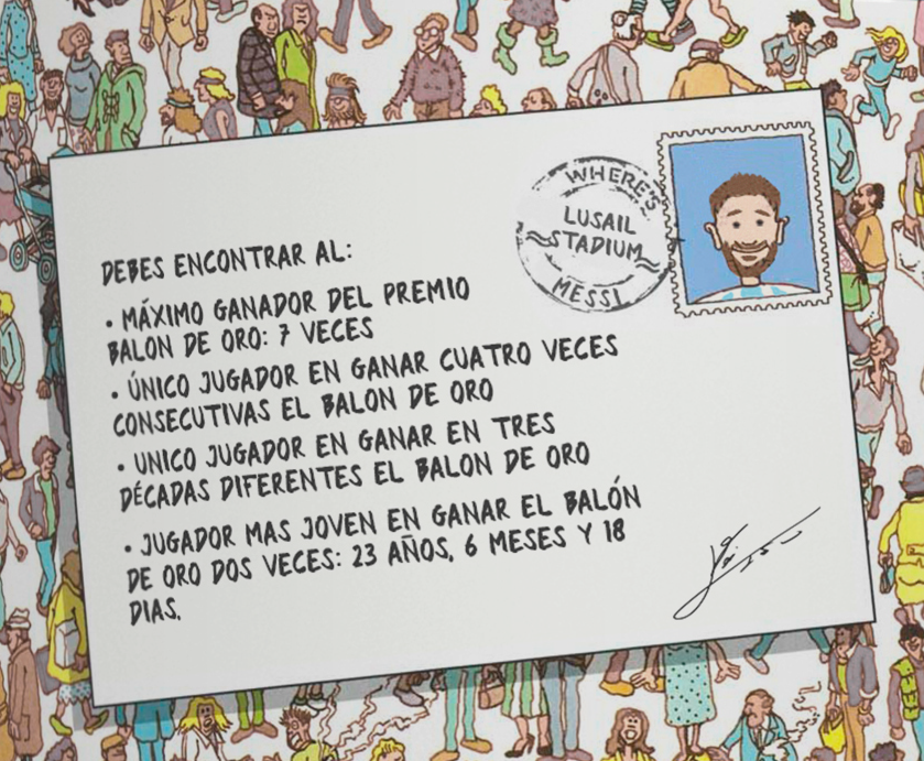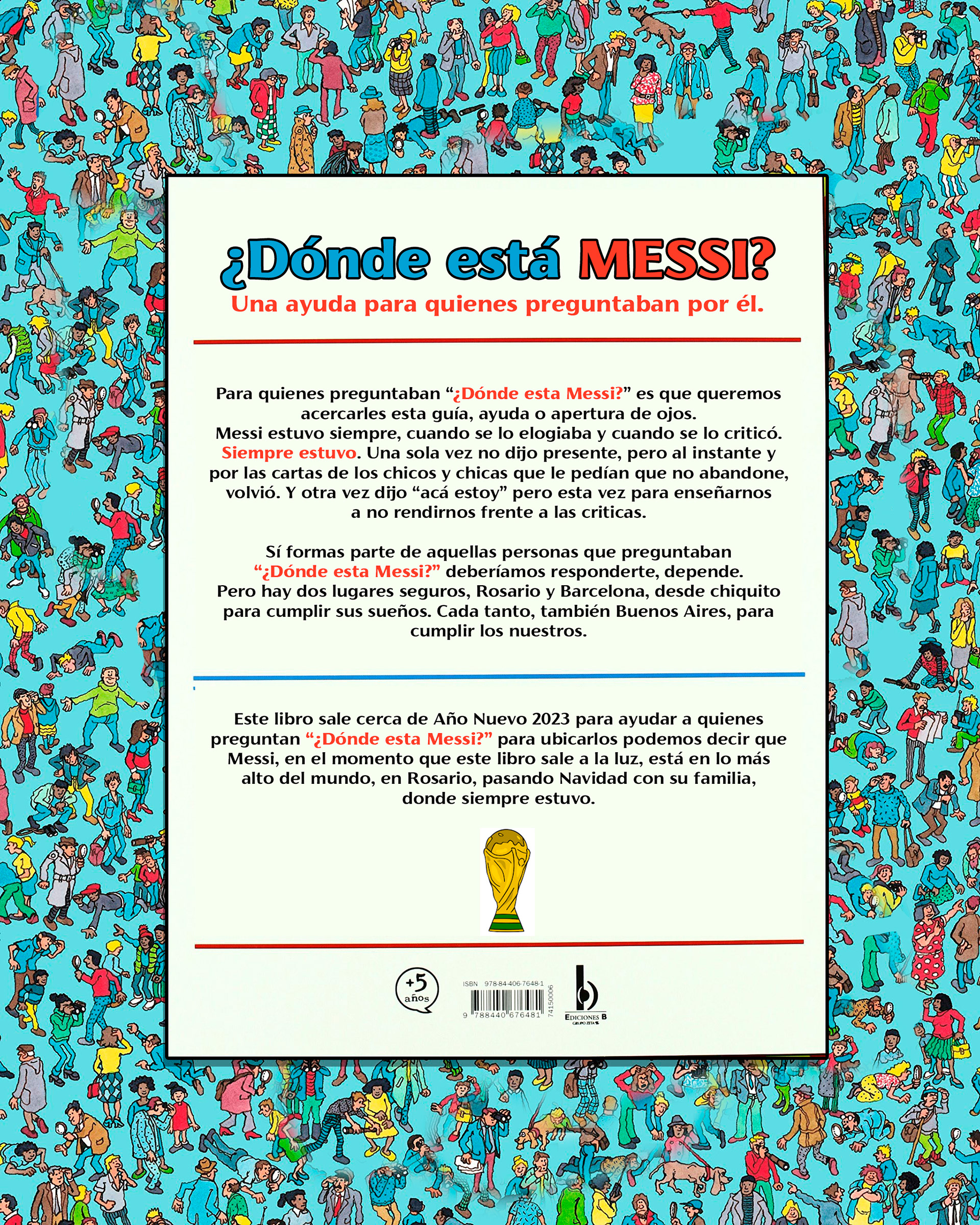 Creemos que después del Mundial Qatar 2022, ya saben donde está Messi, pero por las dudas hicimos este libro al estilo de "Where´s Wally?" y lo hicimos bien sencillo, porque si antes no lo veían, después del Mundial seguro no lo quieran ver más.